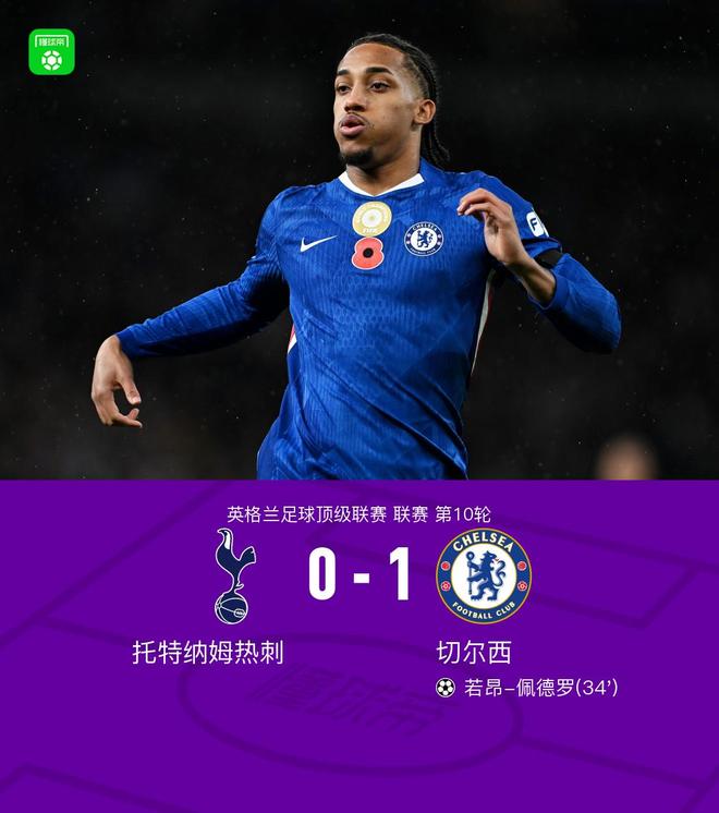 北京時間11月2日,英格蘭足球超級聯賽第10輪,托特納姆熱刺主場迎戰(zhàn)切爾西。上半場,凱塞多搶斷后助攻,若昂-佩德羅破門。下半場最后時刻,吉滕斯和若昂-佩德羅相繼錯失良機。全場比賽結束,切爾西1-0客場擊敗熱刺。
